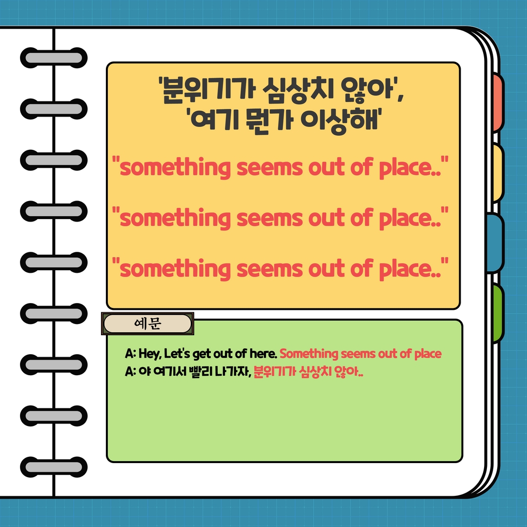그래서 'out of place' 라고 생각하시면 암기하시기 쉬울거에요 ㅎㅎ