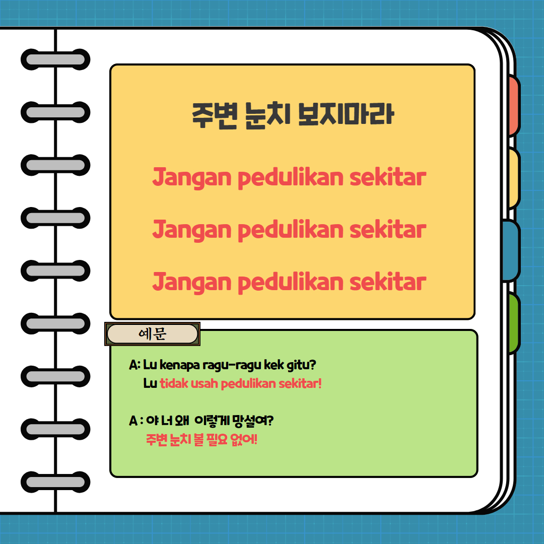 인니어로 '주변 눈치 보지마라!' 는