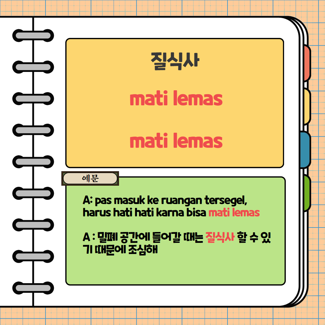 kematian tercekik 이라는 표현도 있고 몇 가지 비슷한 표현도 있지만 mati lemas가 가장 표현적으로 쓰이는 듯 해요~