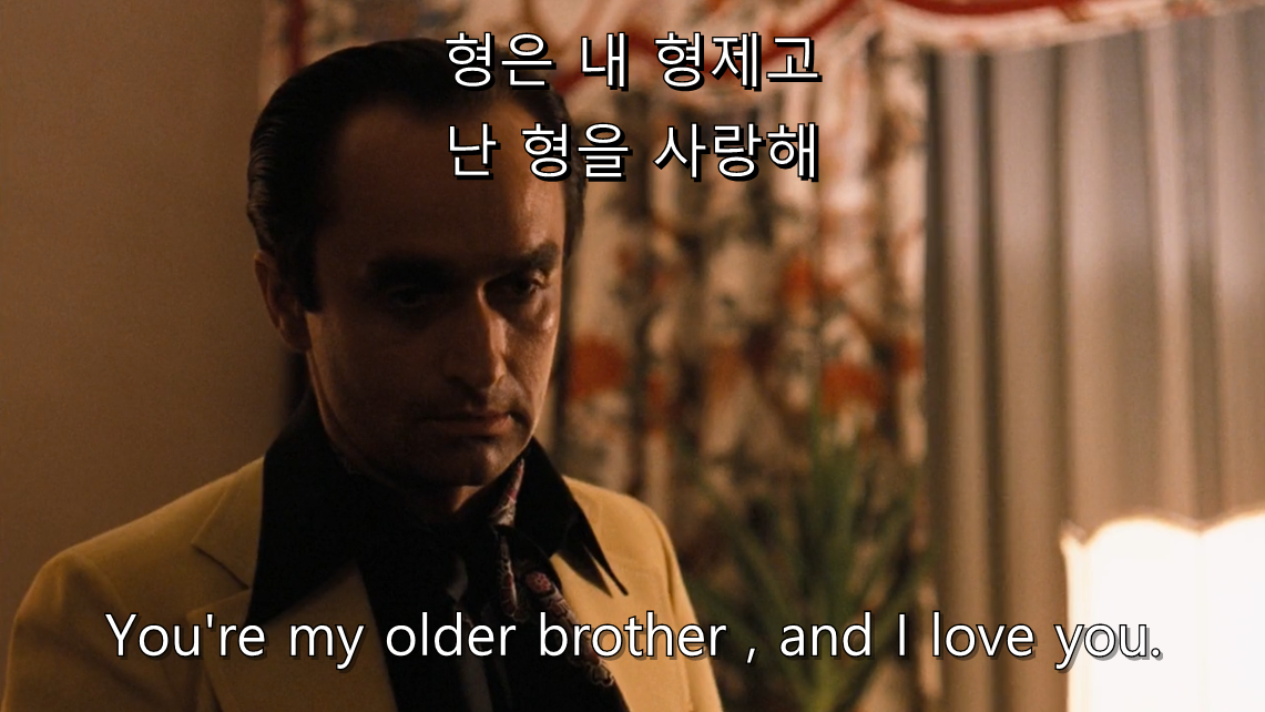 아무튼 다행히 영어 공부하기에는 아주 좋은 반복 돌려보기에 거리낌이 없는 전 제 최애 영화로 대부를 뽑습니다.